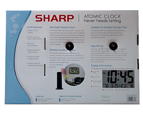 -. Binding : Kitchen -. Brand : Sharp -. Color : gray -. EAN : 0049353928777 -. Feature : Extremely accurate atomic clock with indoor/outdoor temperature / The numbers are large, easy-to-read -digital display / You can use the auto adjust for daylight saving time / Great for home, office or industrial use / Accurate within one second per year -. IsAutographed : 0 -. Label : Sharp -. Manufacturer : Sharp -. MPN : 386166 -. PackageQuantity : 1 -. PartNumber : 386166 -. ProductGroup : Home -. ProductTypeName : HOME -. Publisher : Sharp -. Studio : Sharp -. Title : Sharp Digital Atomic Wall Clock - Gray -. UPC : 049353928777