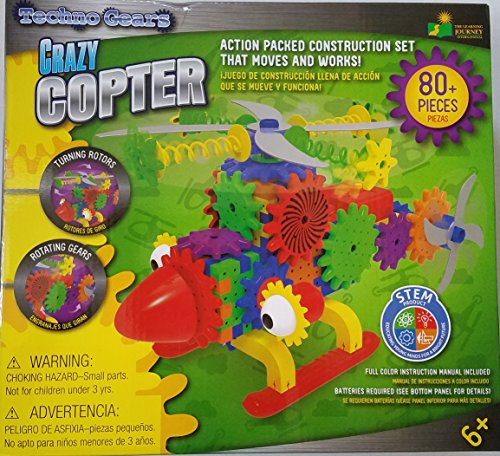 -. Binding : Toy -. Brand : Techno Gears -. EAN : 4933073181832 -. Feature : Over 80 colorful construction pieces to build a moving and rotating quirky copter. / Includes power motor, and colorful detailed instruction manual. / Introduces the science of gear ratio. / Product aligns with the science, technology, engineering, and math standards (stem). / Compatible with all techno gears sets. -. IsAdultProduct : 0 -. Label : Techno Gears -. Manufacturer : Techno Gears -. ProductGroup : Toy -. ProductTypeName : TOYS_AND_GAMES -. Publisher : Techno Gears -. Studio : Techno Gears -. Title : Crazy Copter Action Packed Construction Set That Moves and Works
