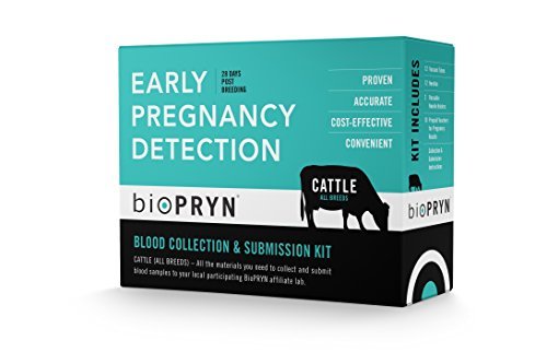 -. Binding : Baby Product -. Brand : BioTracking Inc. -. EAN : 0869861000006 -. Feature : BioPRYNcattle Early Pregnancy Detection - supplies to test 10 animals by sending to any of 40 BioPRYN® affiliate labs / Proven-Technology has been peer-reviewed and validated for over 10 years and has successfully tested over 7 million animals / Accurate- From 28 days post breeding throughout gestation BioPRYNcattle has over 97% accuracy / Cost- Effective- Extremely competitive with other cattle pregnancy detection methods / Convenient- Can be completed on animal owner's schedule without special training or equipment. -. IsAdultProduct : 0 -. Label : BioTracking Inc. -. LegalDisclaimer : For use on animals only. -. Manufacturer : BioTracking Inc. -. MPN : Bio-2834 -. NumberOfItems : 1 -. PackageQuantity : 1 -. PartNumber : Bio-2834 -. ProductGroup : Baby Product -. ProductTypeName : BABY_PRODUCT -. Publisher : BioTracking Inc. -. Size : N/A -. Studio : BioTracking Inc. -. Title : BioPRYN - Cattle Early Pregnancy Detection -. UPC : 869861000006