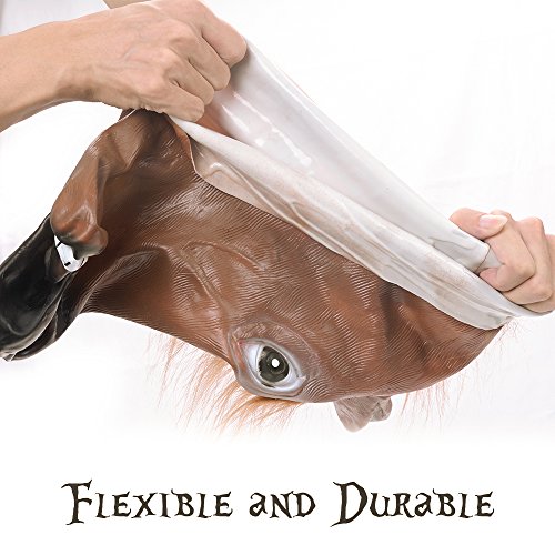 -. Title : Ankuka Novelty Halloween Horse Mask,Party Costume Whole Covered Latex Animal Head Mask(Brown)