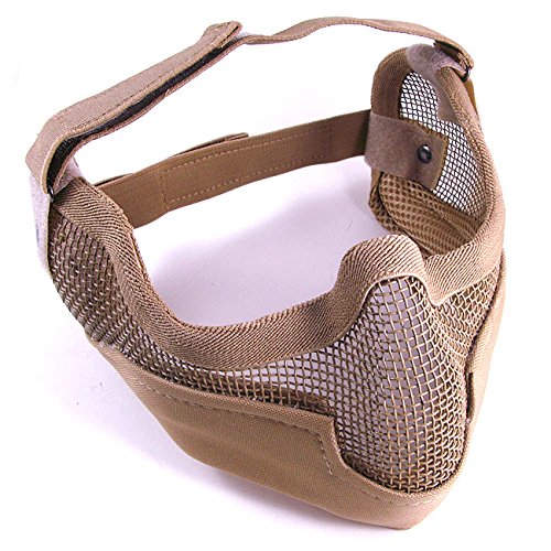 -. Feature : 100% Brand New, Color: DE / Material: low carbon steel wire / Protects nose, mouth and ears in strike / With adjustable elastic strap / Suitable for Airsoft, Hunting, Tactical