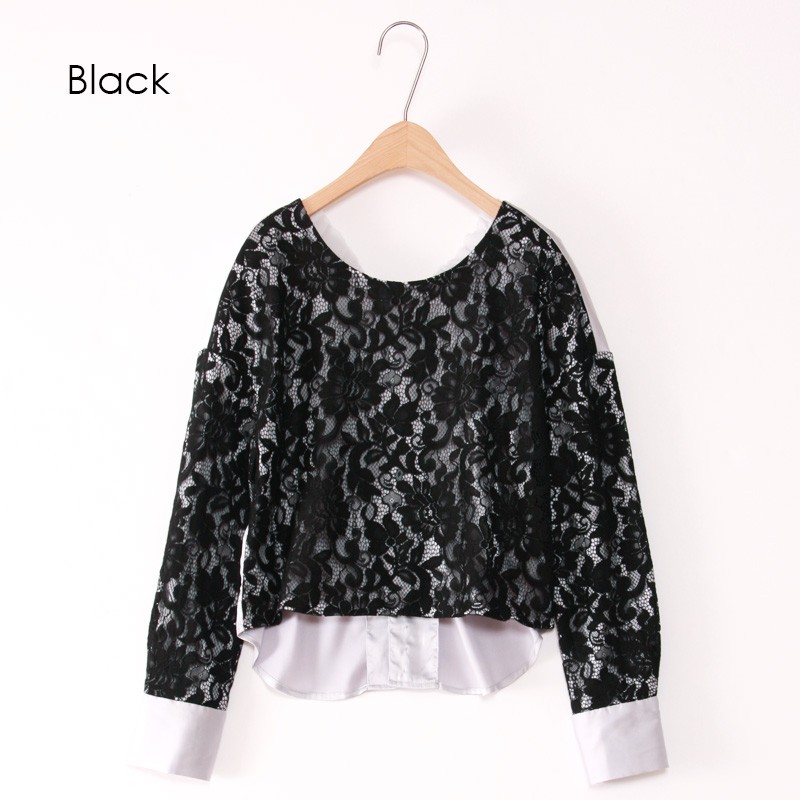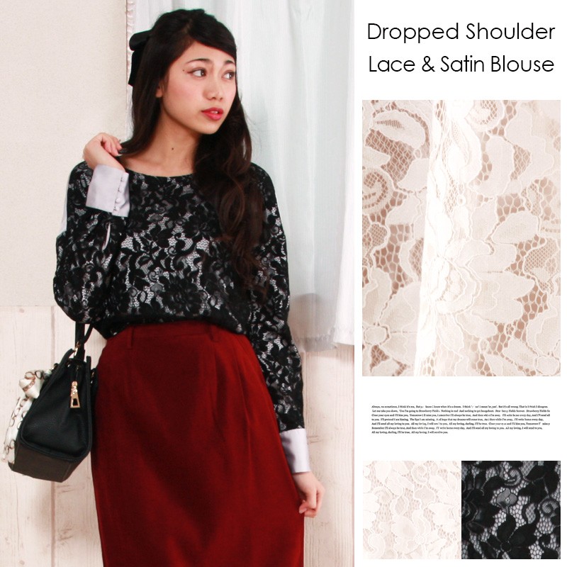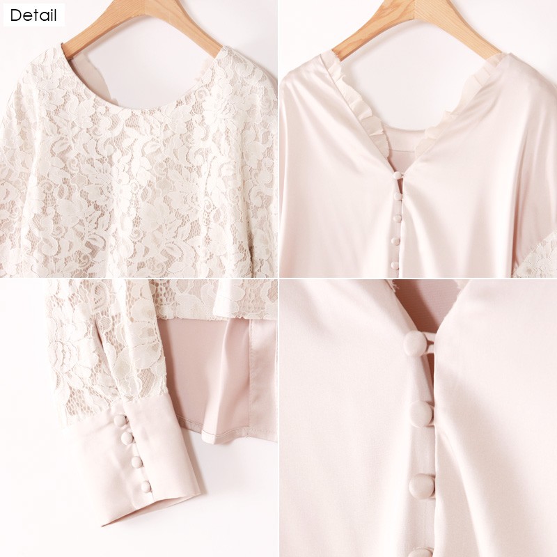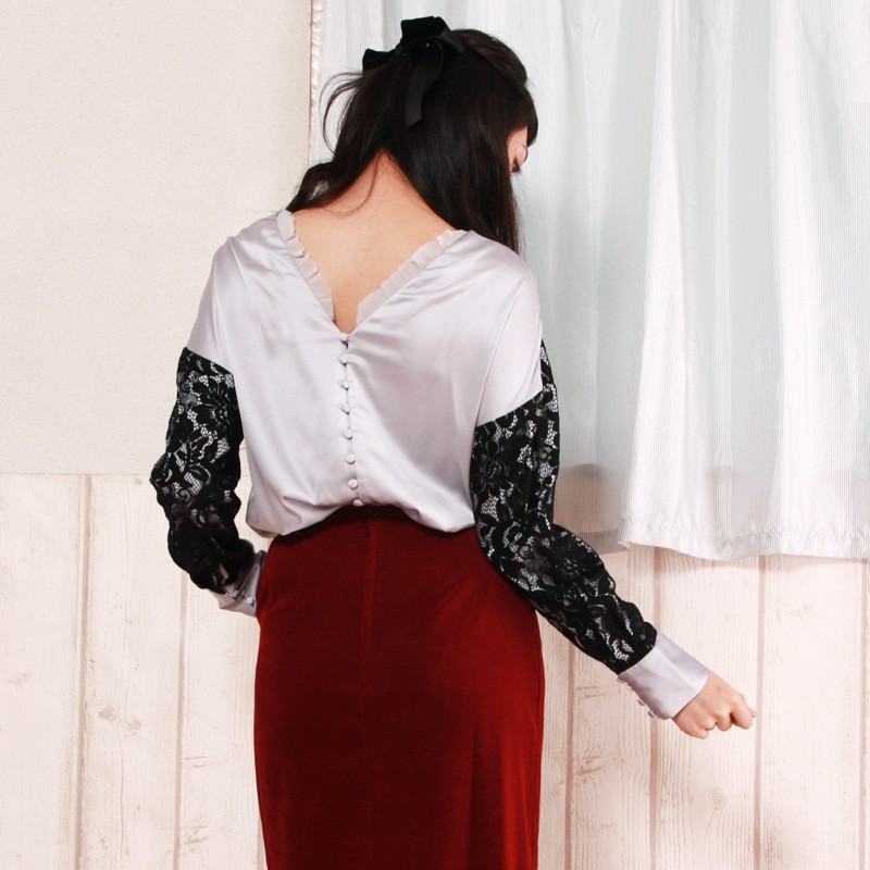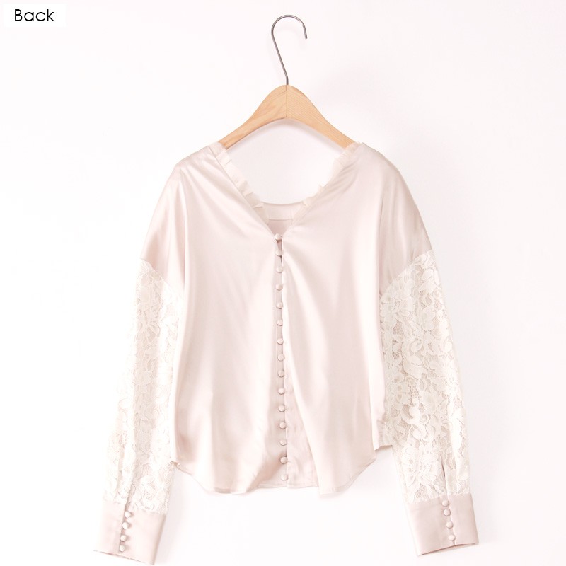 表はレースで施されていてバックスタイルや袖部分はサテンというオシャレなブラウス☆