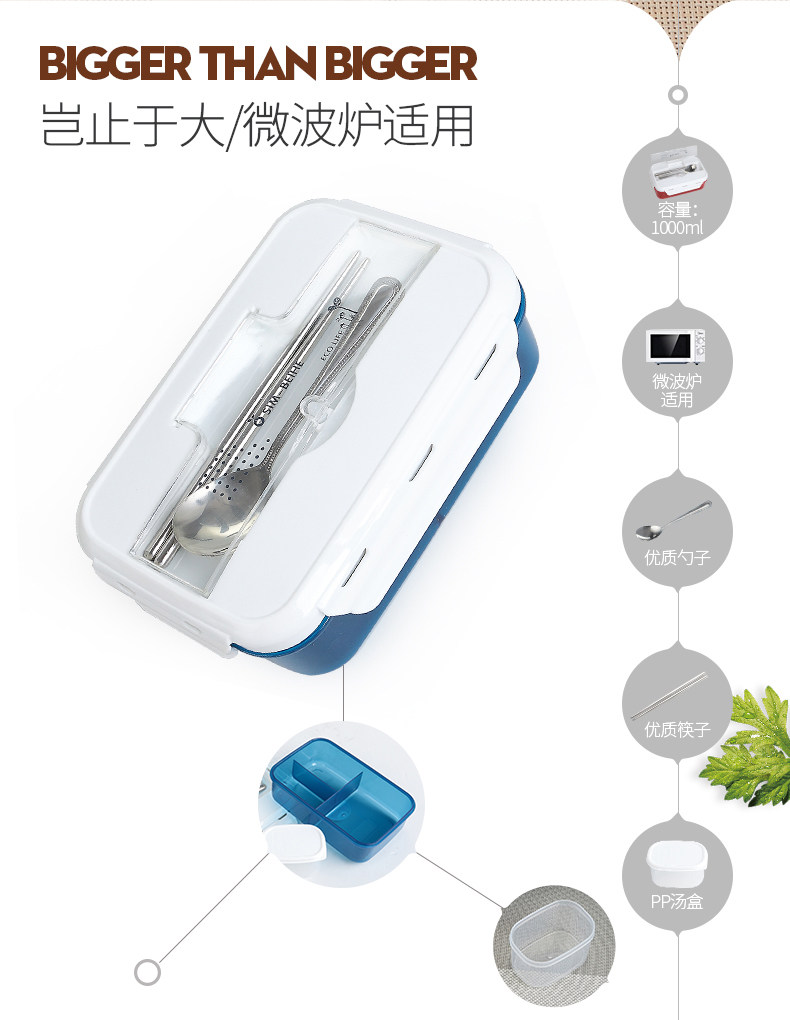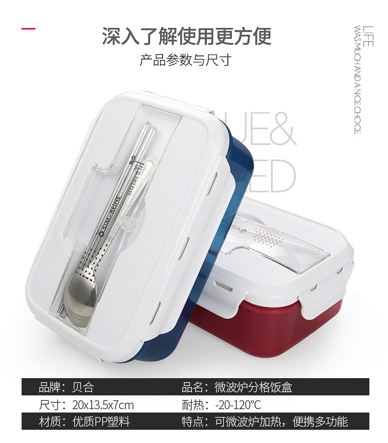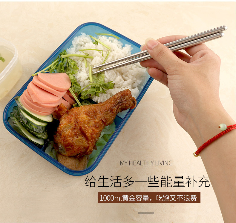 密封防漏创意学生分格微波炉饭盒便当盒大塑料方形三格保鲜盒