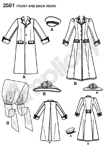 -. Feature : Misses and men costumes in size a (8 -18 / xs -xl), simplicity pattern 2581 / Number of looks included:2 / A (8 -18 / xs -xl) / Sested Fabrics: Canvas, Linen Blends, Muslin, Poplin; B Scarf in Chiffon, Gauze, Georgette, Organza; Extra fabric needed to match plaids, stripes or one-way design fabrics