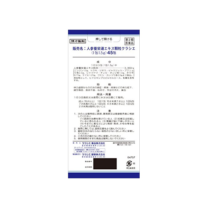 원본상품명: 【第2類??品】人?養?湯エキス顆粒クラシエ 45包