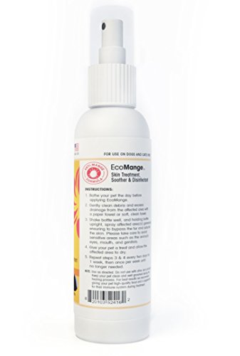 EcoMange is a natural mange skin treatment for dogs and cats with confirmed cases of mange mites. EcoMange soothes and cleans skin containing Sarcoptic mange and Demodectic mange (demodex mange). EcoMange penetrates the skin and stops the itching fast, allowing the skin to start the healing process.