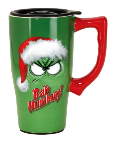 The perfect gift for the grumpy Grinch in your life! This ceramic travel mug is perfect for anyone on the go. With a locking lid and a skid plated bottom this mug is the perfect travel companion. The double wall insulation keeps drinks hot or cold and it is both microwave and dishwasher safe. Holds 16oz.Feature