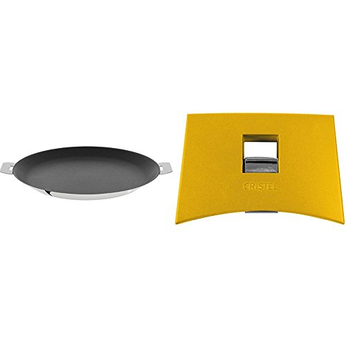 -. Title : Cristel CR30QE Non-Stick Crepe Pan, Silver, 12" with Cristel Mutine Spplmaj Set of Handles, Yellow