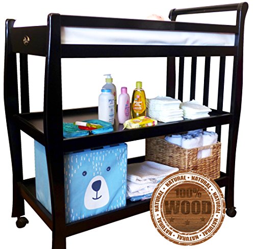 Solid Pine Baby Diaper Change Table with 2 Shelves (Espresso)
