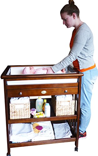 Solid Pine Baby Diaper Change Table with 2 Shelves (chestnut)