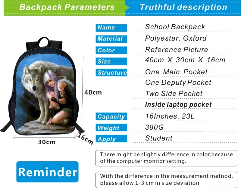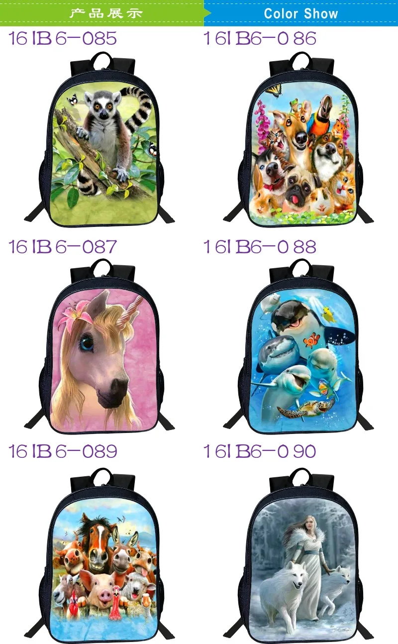 2017 Fashion Oxford 16-Inches Printing European Style Animal Wolf Tennage School Bags for Boys Schoolbag Backpack for Women Bag
