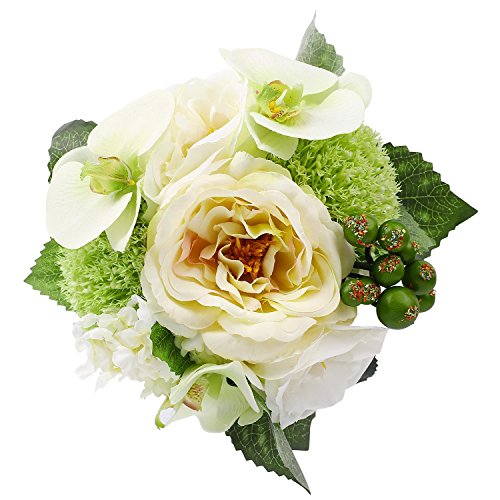 Silk Rose Bouquet White SOLEDI Artificial Fake Flower Bunch Bouquet Bridal Bouquet Wedding Living Room Table Home Garden Decoration