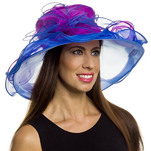 -. Title : Silver Lilly Women's Wide Brim Organza Kentucky Derby Church Hat by