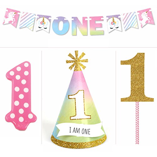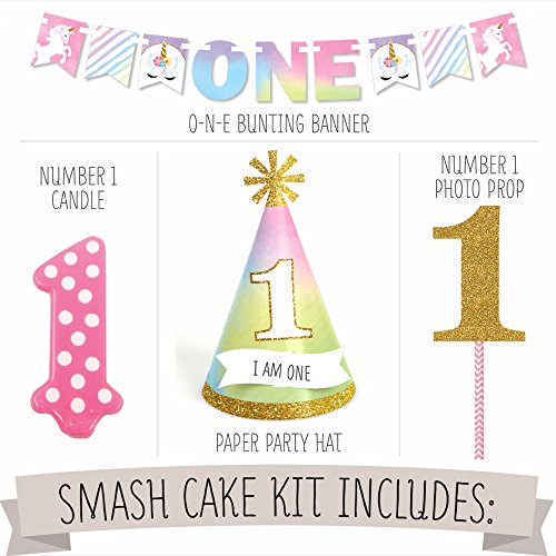 Rainbow Unicorn - 1st Birthday Girl Smash Cake Kit - High Chair Decorations