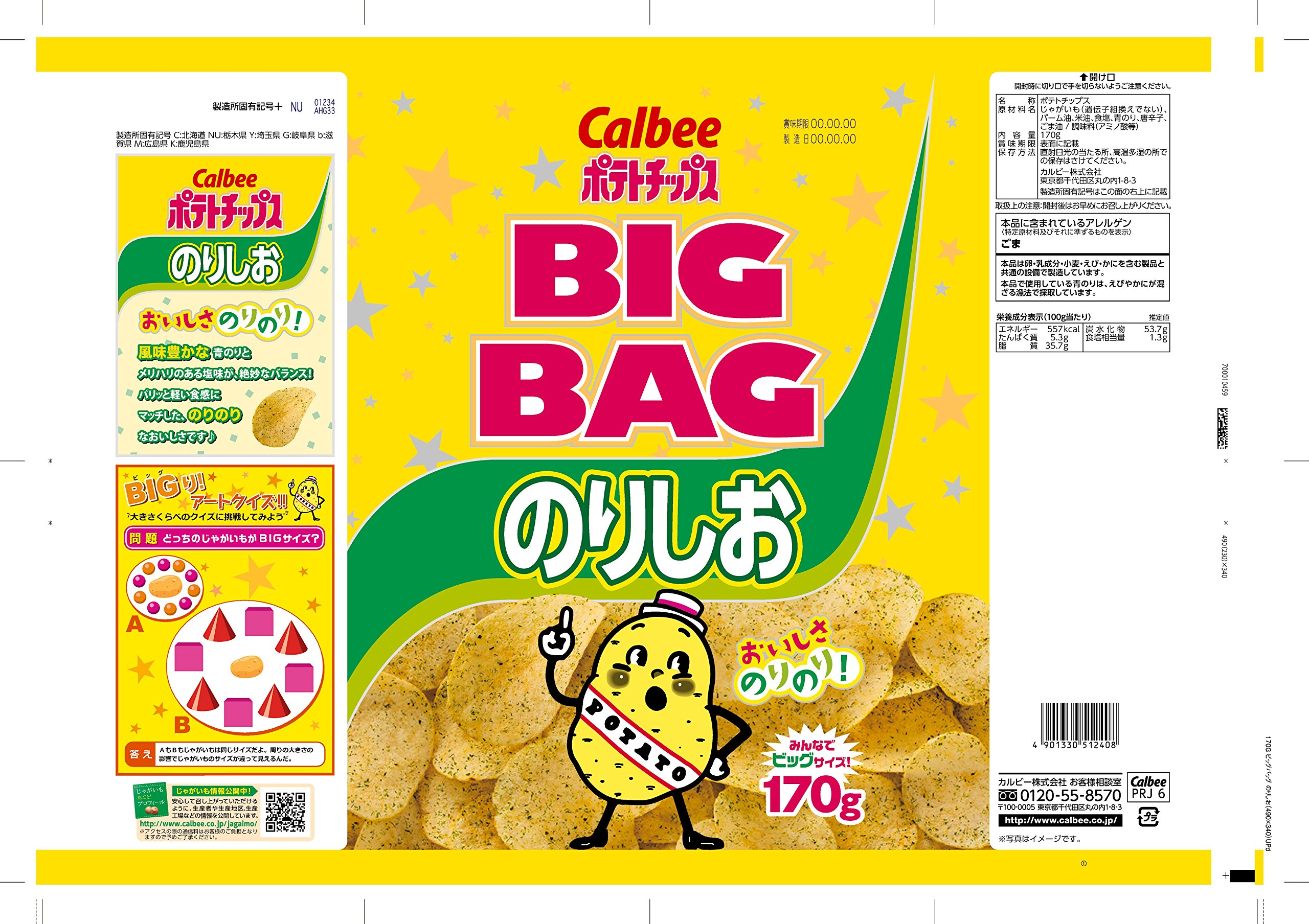 "Potato chips norisushi" which smells soft fluffy is a big bag that contains 170 g of plenty.