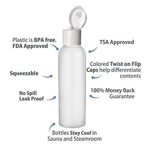 Moyo Natural Labs 2 Oz HDPE Flip Cap Empty Squeezable Travel Bottles BPA Free TSA Compliant Travel Size Bottle Set Made in USA