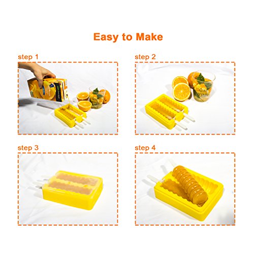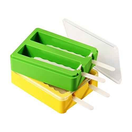 Popsicle Molds, ULuck Silicone Popsicle Molds Popsicle Maker Ice Pop Molds with 2 Lids and Sticks - Set of 2 - BPA Free - DIY Ice Cream Maker For Kids - Yellow and Green