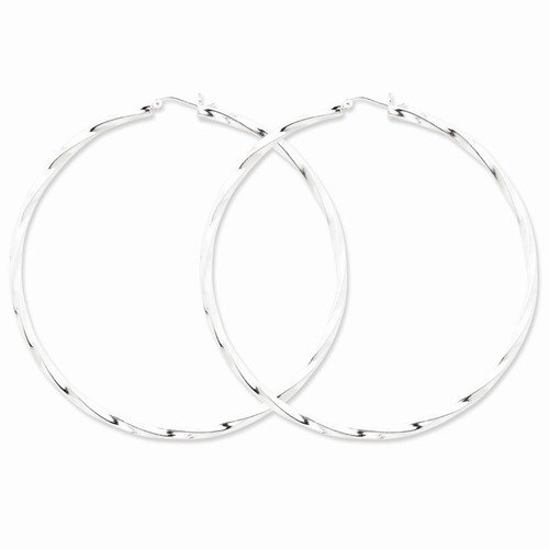 925 Sterling Silver Twisted Hoop Classic Loop Tube Earrings (83mm x 81mm)