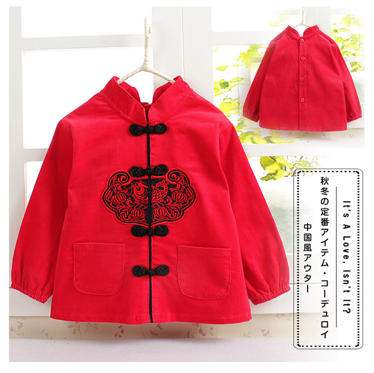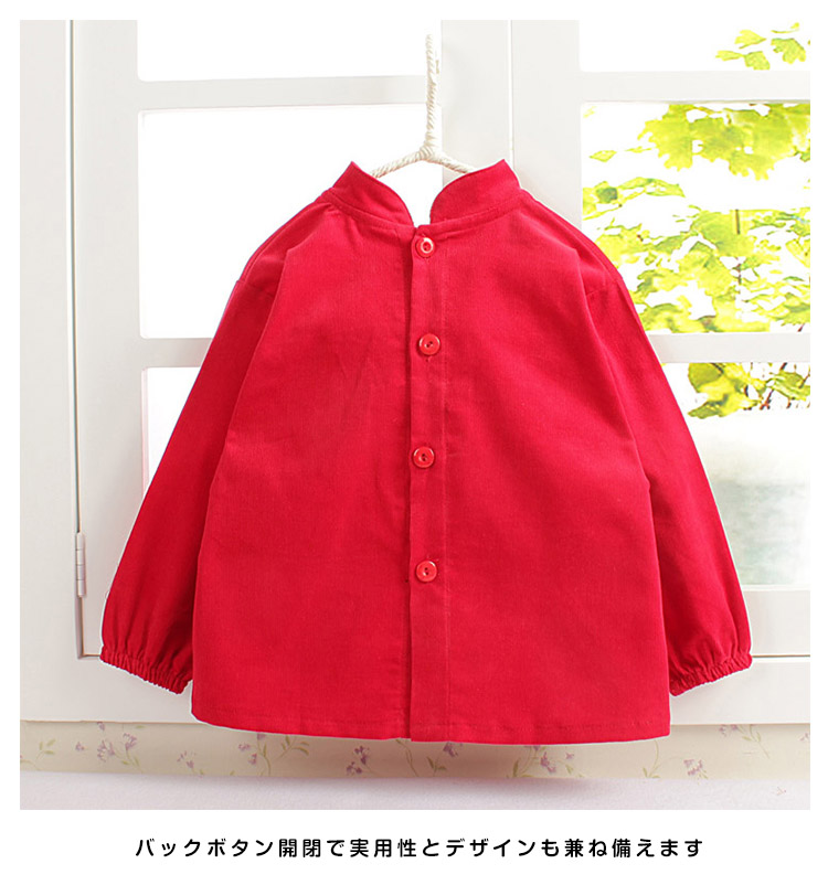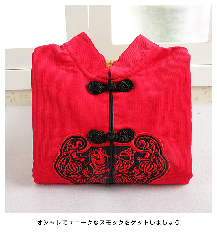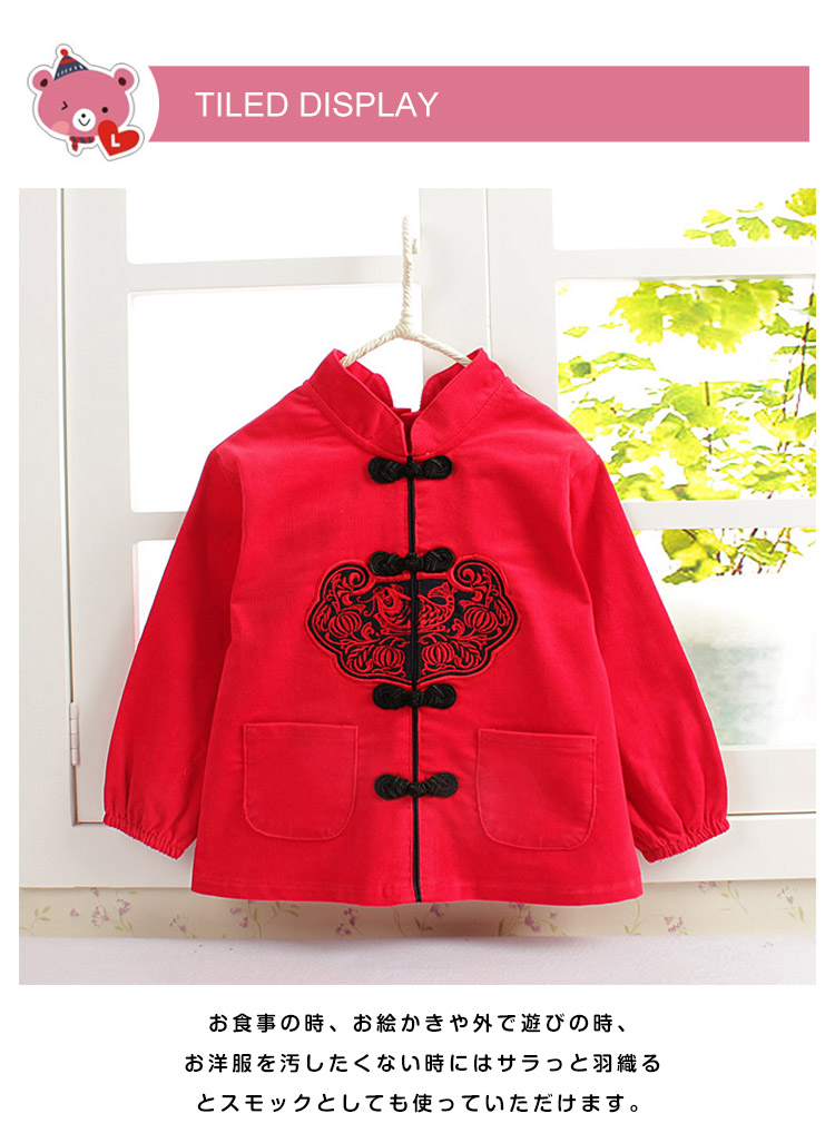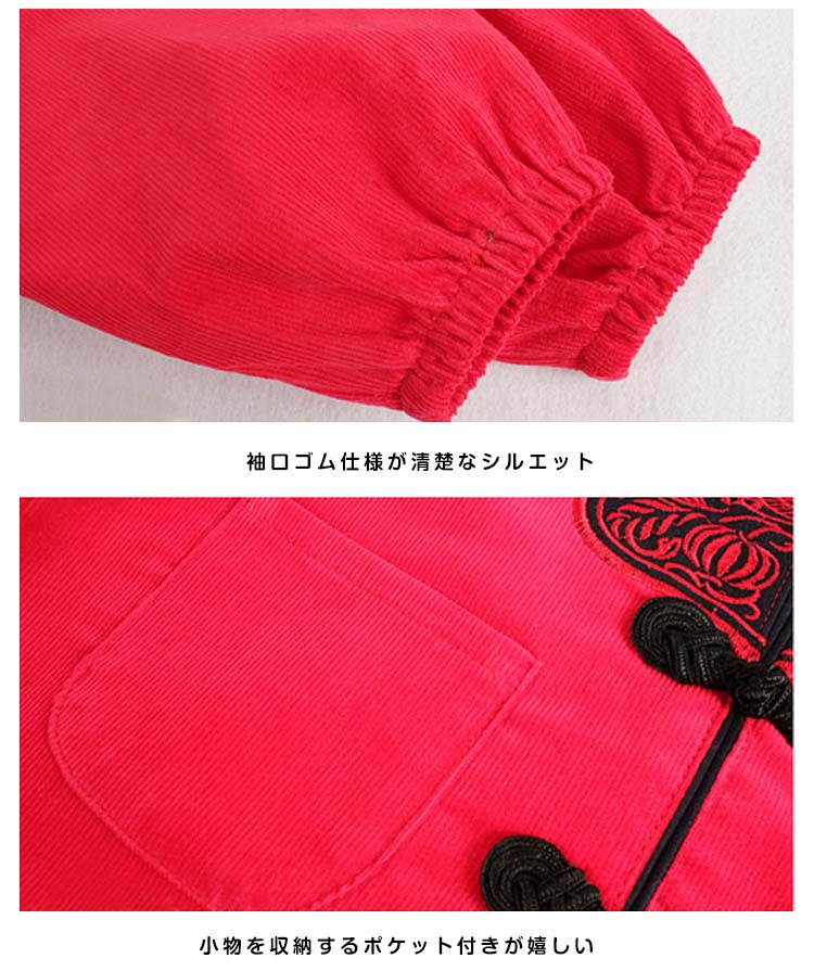 | 秋冬の定番アイテム・コーデュロイ中国風アウターお食事の時、お絵かきや外で遊びの時、お洋服を汚したくない時にはサラっと羽織るとスモックとしても使っていただけます。バックボタン開閉で実用性とデザインも兼ね備えますオシャレでユニークなスモックをゲットしましょう | |