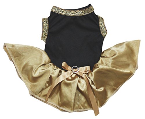 -. Title : Petitebella Puppy Clothes Dog Dress Plain Black Top Gold Tutu