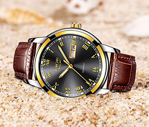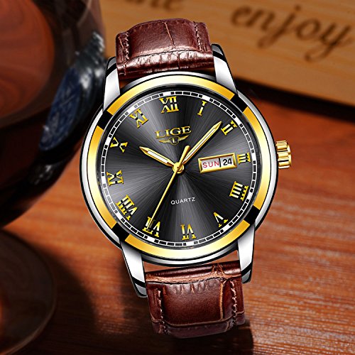 Brand, Seller, or Collection Name:LIGE Part Number:9846LH Item Shape:Round Display Type:Analog Clasp:Buckle Case material:Stainless steel Case diameter:1.65 inches Case Thickness:0.47 inches Band Material:Cloth Band length:Unisex Band width:0.78 inches Band Color:Brown Dial color:Black Calendar:Date Special features:Luminous Movement:Analog quartz