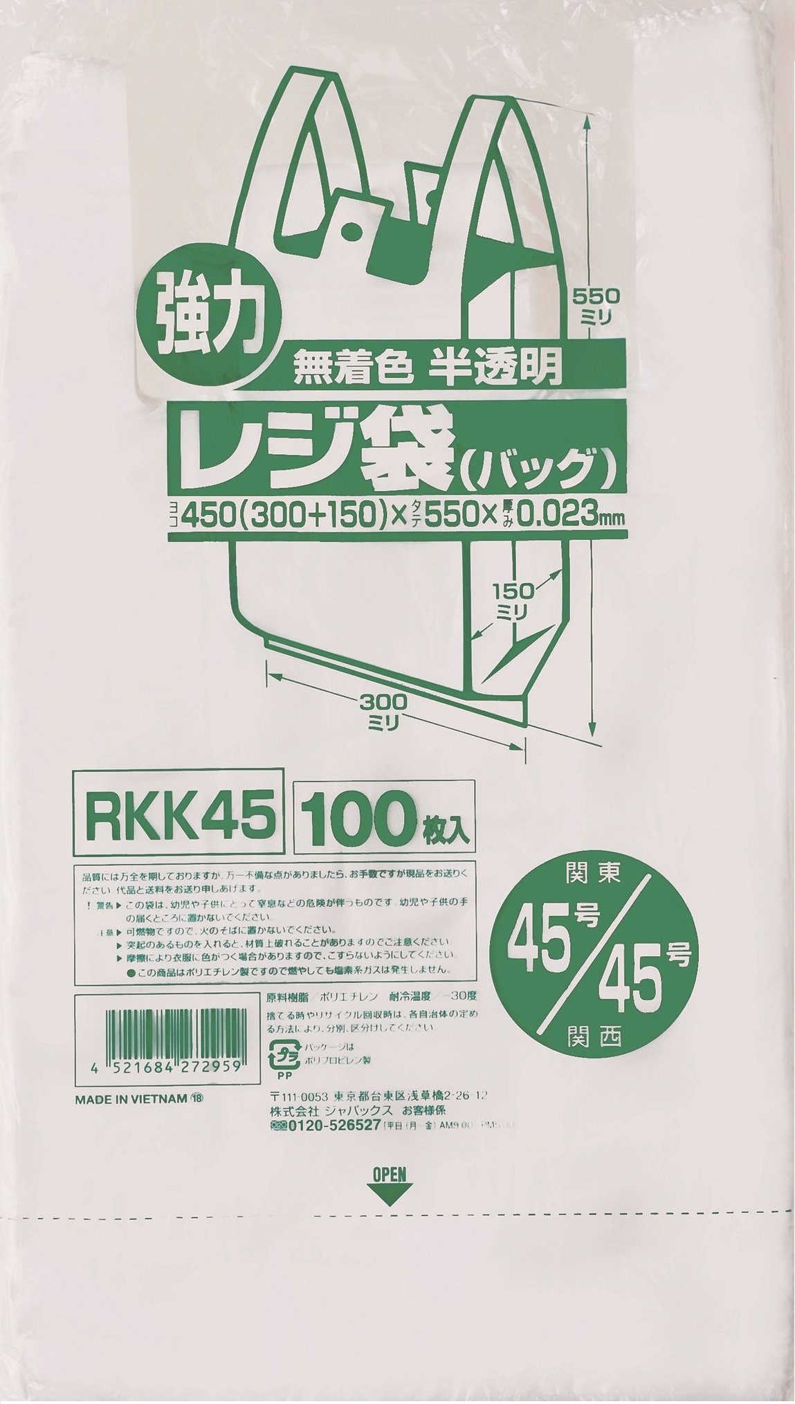 Japakus shopping bag 45 No. 100 is a plastic bag made of polyethylene.