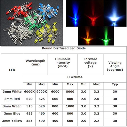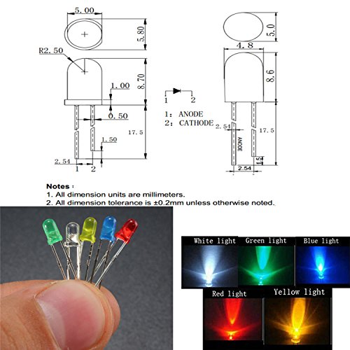 400Pcs Light Emitting Diode,YUNGUI 3mm 5mm LED Diode Kit LED Light Assorted Clear Bulbs with White Red Yellow Green Blue Orange Colors UV Pink Lights
