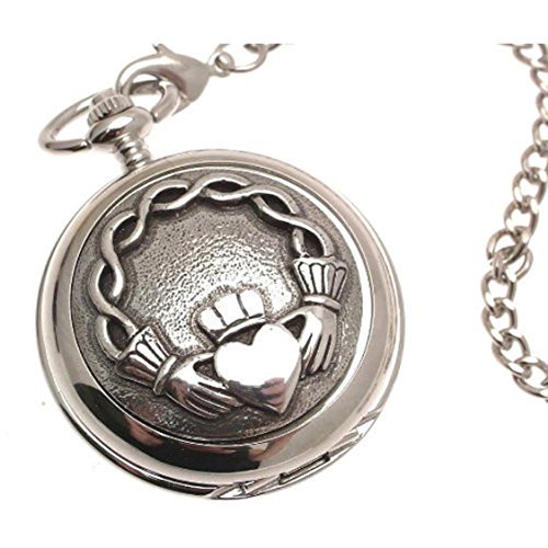 -. Title : Engraving included - Pocket watch - Solid pewter fronted mechanical skeleton pocket watch - Claddagh design 61