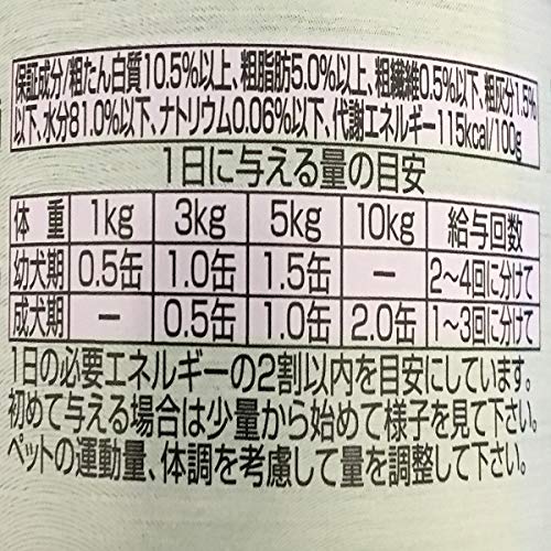 保存方法:開缶後は、別の容器に移し替え、冷蔵庫で保管し早めに与えて下さい。