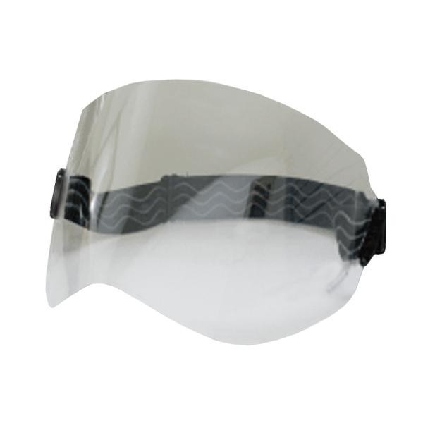 | ブラスター用シールド。後ろのバンドで止めるだけで、手軽に装着できます。側面にドットがあるタイプのヘルメットには、付属の固定バンドが使用可能です!! |