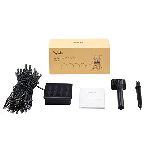 Aglaia Solar String Lights Warm White with 800mAh Rechargeable Battery, 33ft 100 LEDs with 7 Lighting Modes for Home Garden Patio Decoration