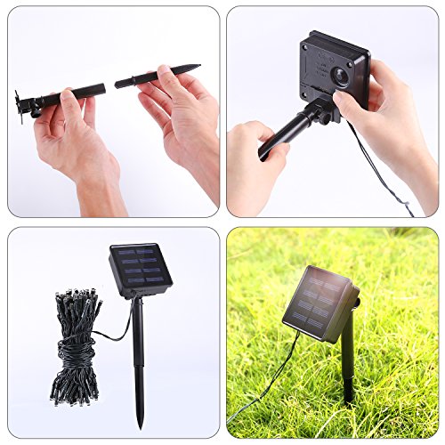 Easy Installation. What you need to do is insert the solar panel part with stake into ground where can get enough sunlight during the daytime, and install the string lights where you desire to decorate your garden or home