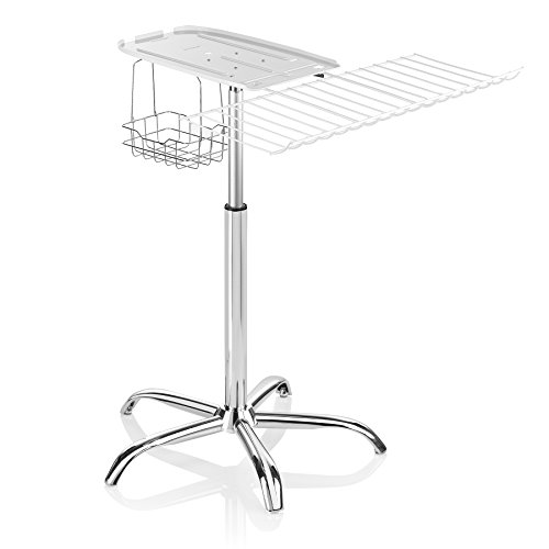 • Removable support shelf catches fabric while standing; convenient storage rack