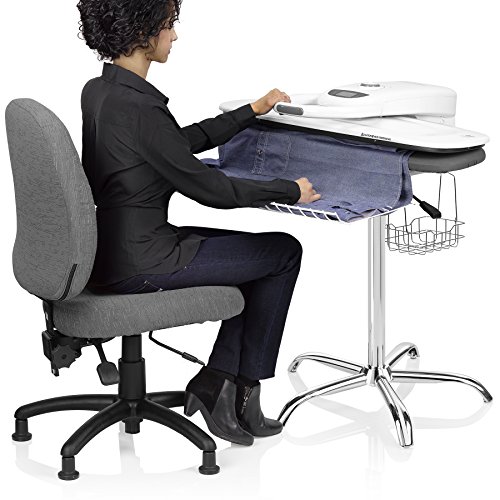 • Telescopic steam press stand enables you to sit or stand depending on task or comfort requirements