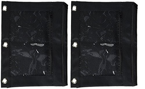 - Black pencil pouch fastens into 3-ring binders