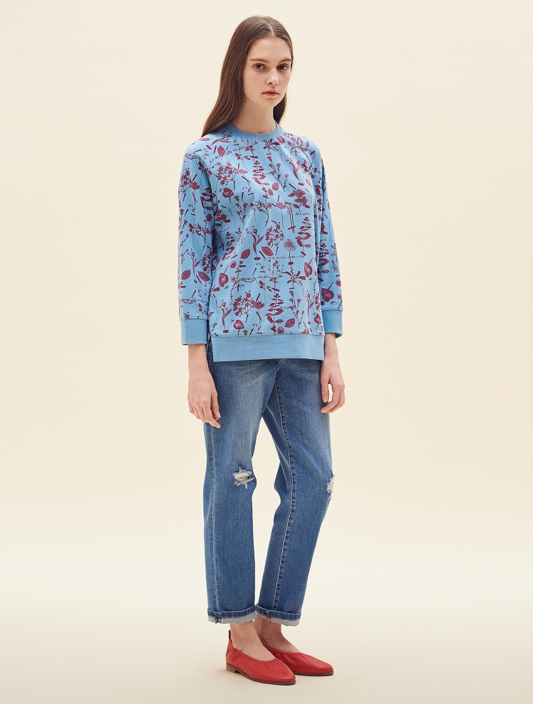 - 셔츠와 레이어드 코디하거나 단품으로 캐주얼하게 착용할 수 있는 스웨트 셔츠입니다.