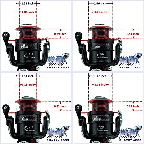 Sharky 2500 Weight 9.5oz/265g / Max Drag 17.5LB/8KG / Gear Ratio 5.2:1/ Line Capacity 0.285mm/145, 0.31/130, 0.33/100 /Monofilament Capacity 12Lb/160 Yds, 14/140, 16/80