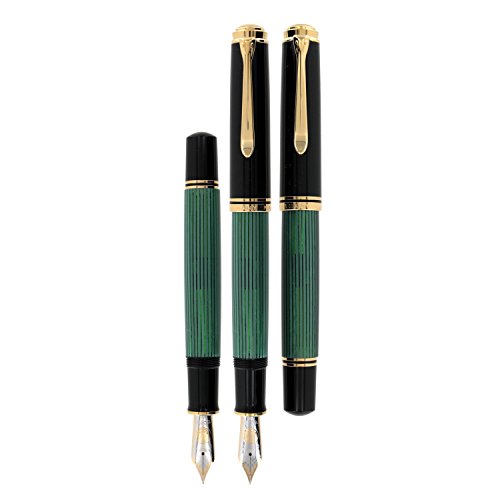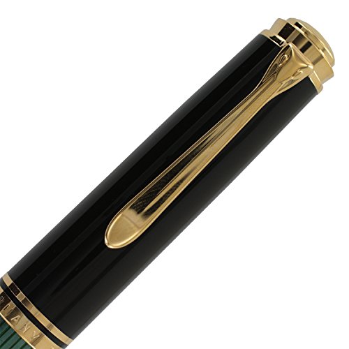 -. Binding : Office Product -. Brand : Pelikan -. Color : Black/Green GT -. EAN : 4012700987594 -. Feature : Piston filler including a 24 carat gold plating and an elaborately striped body made of celluloid acetate. / The nib of the Souverän piston filler M1000 is made of 18 carat/750 gold. / All nibs are refined with a rhodium decor and their writing qualities were tested by hand. / The fountain pens are equipped with a differential piston-filling mechanism, of which is elaborated with high-value brazen components on the model M1000. / Comes in an elegant Pelikan Gift Box. -. Label : Pelikan -. Manufacturer : Pelikan -. Model : 987594 -. MPN : 987594 -. NumberOfItems : 1 -. PackageQuantity : 1 -. PartNumber : 987594 -. ProductGroup : Office Product -. ProductTypeName : WRITING_INSTRUMENT -. Publisher : Pelikan -. Size : Medium -. SKU : juritan-0017486676-1844 -. Studio : Pelikan -. Title : Pelikan Souveran 1000 Fountain Pen Green Medium