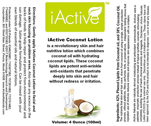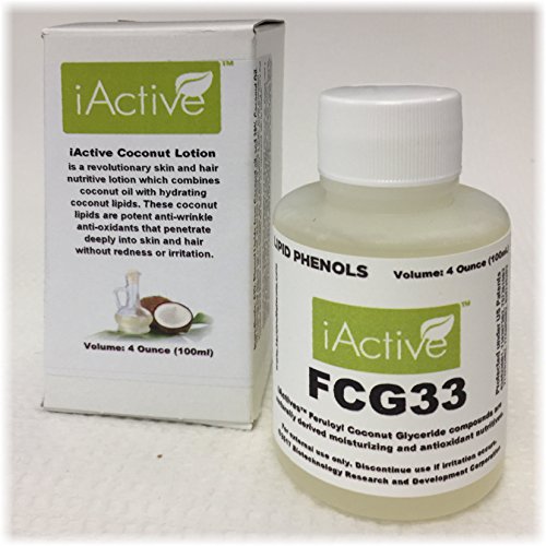 FCG33 Coconut Lipid Anti-wrinkle Antioxidant Lotion for Skin and Hair, 4 Oz., iActive Naturals Coconut Phenol-lipids in Natural Coconut Oil