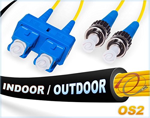 Studio : FiberCablesDirect Publisher : FiberCablesDirect Binding : Electronics Product Description OS2 SC to ST Indoor/Outdoor 9/125 Singlemode Duplex fiber optic cable with Corning optical fiber. Our Indoor / Outdoor fiber optic cables have a black polyethylene (PE) outer jacket that protects against moisture and sunlight exposure. The tightly buffered PE layer protects the inner yellow colored, 3.0mm thick diameter PVC jacket that's OFNR riser rated, UV resistant, and flame-retardant. This Indoor/Outdoor fiber optic assembly has an operating temperature between -40°C and 85°C. Each end of this robust, outdoor fiber patch cord is terminated with ceramic ferrule SC connectors (clips not included) for compact, high density, environments and durable stainless steel ST connectors. Our Indoor/Outdoor fiber patch cables are custom made and some orders may need 1-2 day lead time, however most ship in a day. Each custom fiber optic assembly is individually tested and carefully packaged to ensure safe delivery. We also provide complete test results packaged with each fiber optic jumper and a Lifetime warranty on all our fiber optic products. Orders for cables above 35 meters may also require an additional 1 to 2 days to ship depending on the quantity ordered. However, most orders ship within 24 hours or less. Lengths available in our online catalog for indoor/outdoor Os2 Sc St fiber optic patch cables: 0.5 Meter, 1 Meter, 2 Meter, 3 Meter, 4 Meter, 5 Meter, 6 Meter, 7 Meter, 8 Meter, 9 Meter, 10 Meter, 12 Meter, 15 Meter, 20 Meter, 25 Meter, 30 Meter, 35 Meter, 40 Meter, 45 Meter, 50 Meter, 55 Meter, 60 Meter, 65 Meter, 70 Meter, 75 Meter, 80 Meter, 85 Meter, 90 Meter, 95 Meter, 100 Meter, 125 Meter, 150 Meter, 200 Meter, 250 Meter, and 300 Meter. Didn't find what you're looking for? Try our Custom Cable Configurator, quickly build your own customized fiber optic cable and add to Cart. You can select any Cable Type, any Length, any Connector configuration, any Modality, any Strand Count, any Quantity... we build to order. Call in your Custo 0