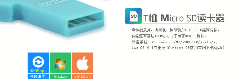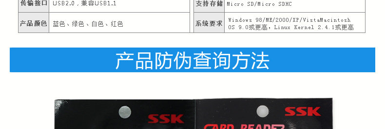 SSK飚王 T恤 单口读卡器  TF个性迷你小巧 读卡器手机卡 包邮
