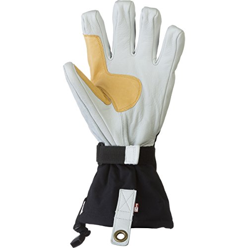 -. Feature : Snow lock strap with Velcro closure to trap in heat and keep out snow; Wolf paw fingertip seam reinforcement / Outdry waterproof membrane / Backhand made of windproof, waterproof and breathable HESTRA Triton polyamide fabric / Palm made of treated Army Leather goat leather with kangaroo leather reinforcements / Comes with removable merino wool liner glove and Hestra handcuffs to secure gloves to wrist
