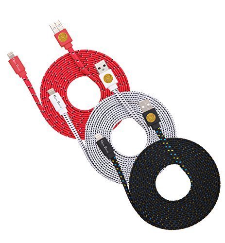 3 pack of 100% Brand New Nylon Braided Flat Noodle lightning 8-PIN to USB cable cord charger.