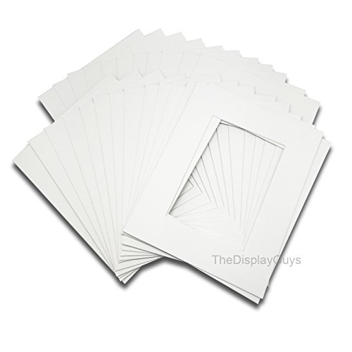 The Display Guys Pack of 25 11x14 inches Black Picture Photo Matting Mats Boards (White Core Bevel Cut) + Black Back Boards + Clear Plastic Bags (25pcs white complete set)