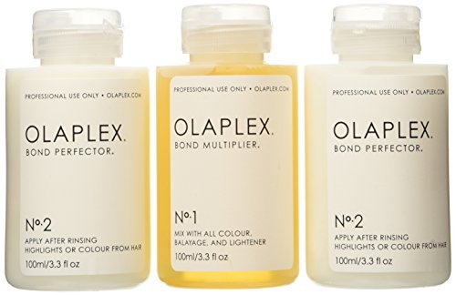 Includes: 1- Olaplex Bond Multiplier No 1 - 3.3oz , 2- Olaplex Bond Perfector No 2 - 3.3oz , 1- Olaplex Hair Perfector No 3 - 3.3oz