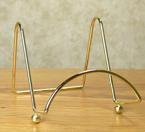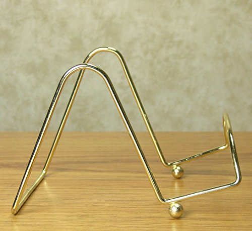 Wire Easel Display Stand Plate Holders - Smooth Brass Metal with Feet - 4 Inch - Set of 3