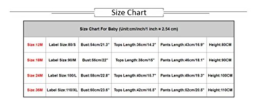 Size Details: (Unit:cm/inch/1 inch = 2.54 cm) Size:12M ?Label Size:80/S ? ? ? Bust:54cm/21.3"Tops?Length:36cm/14.2" ?Pants Length:43cm/16.9" ? Height:80CM Size:18M ?Label Size:90/M ? ? ?Bust:56cm/22"Tops ? ? Length:38cm/15" ? ? Pants Length:46cm/18.1" ? Height:90CM Size:24M ?Label Size:100/L ? ? Bust:58cm/22.8"Tops ?Length:40cm/15.7" Pants Length:49cm/19.3" ? Height:100CM Size:36M ?Label Size:110/XL ?Bust:60cm/23.6"Tops ?Length:42cm/16.5" ?Pants Length:52cm/20.5" ?Height:110CM About Commodities:? ★1. There may be a little difference of the color between the picture and the real goods because of the pixel. We hope you can understand sincerely.? ★2. Please allow slight deviation for the color and measurement. Thanks.? ★3. The goods will be delivered to you about18-25 days, if you need it in urgency you can choose DHL, the delivery time is 3-5 days. Please contact us if you have question about the delivery.? ★4.My store updates often, you are welcome to visit here at any time. ?? 0 |