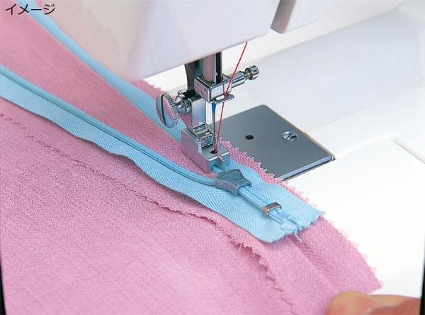 コンシールファスナー専用の押え金です。押え金の溝と中央部のツメが、ファスナーのムシを捉えつつしっかり立ち上げるので、コンシールファスナーのムシの際を縫うことが出来ます。表から見た時に、ムシ部分が見えることなく美しく仕上げることが出来ます。 |