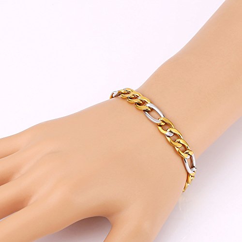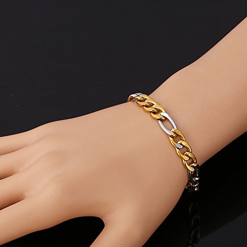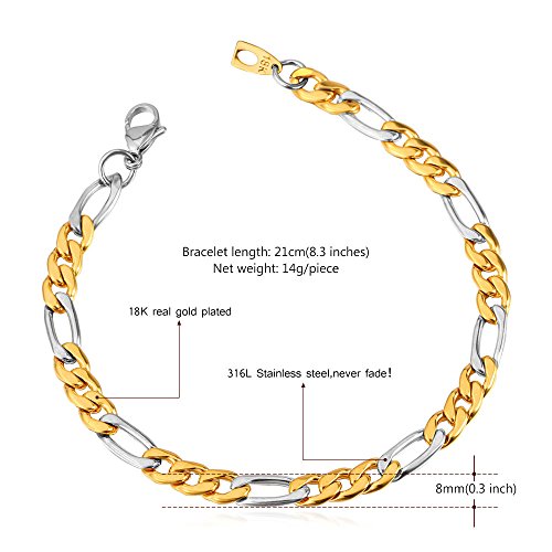 - Feature : Material:Enviromental friendly alloy,18k gold plated,316L stainless steel / Bracelet length:8.3 inches / Net weight: 14g/piece / suitable for daily wear,party jewelry,gift,birthday, graduation,anniversary,statement,clothing match,sport jewelry / Imported,nickel free,anti-allergic,green jewelry