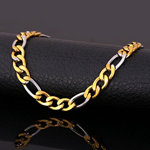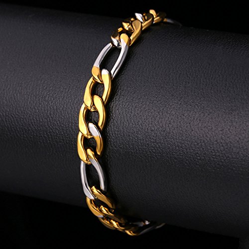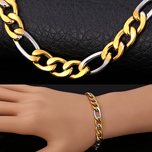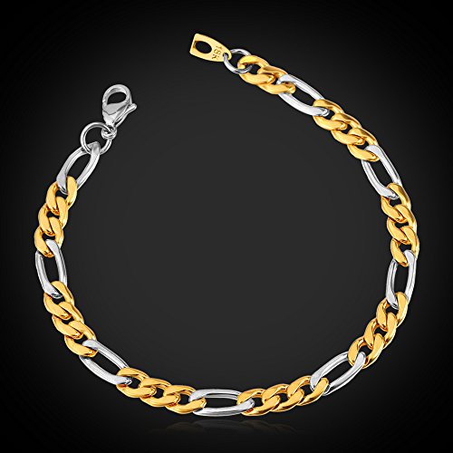 - Title : 2015 New 18k Gold Plated Stainless steel Bracelet For Men Women Figaro Chain 21CM 8MM